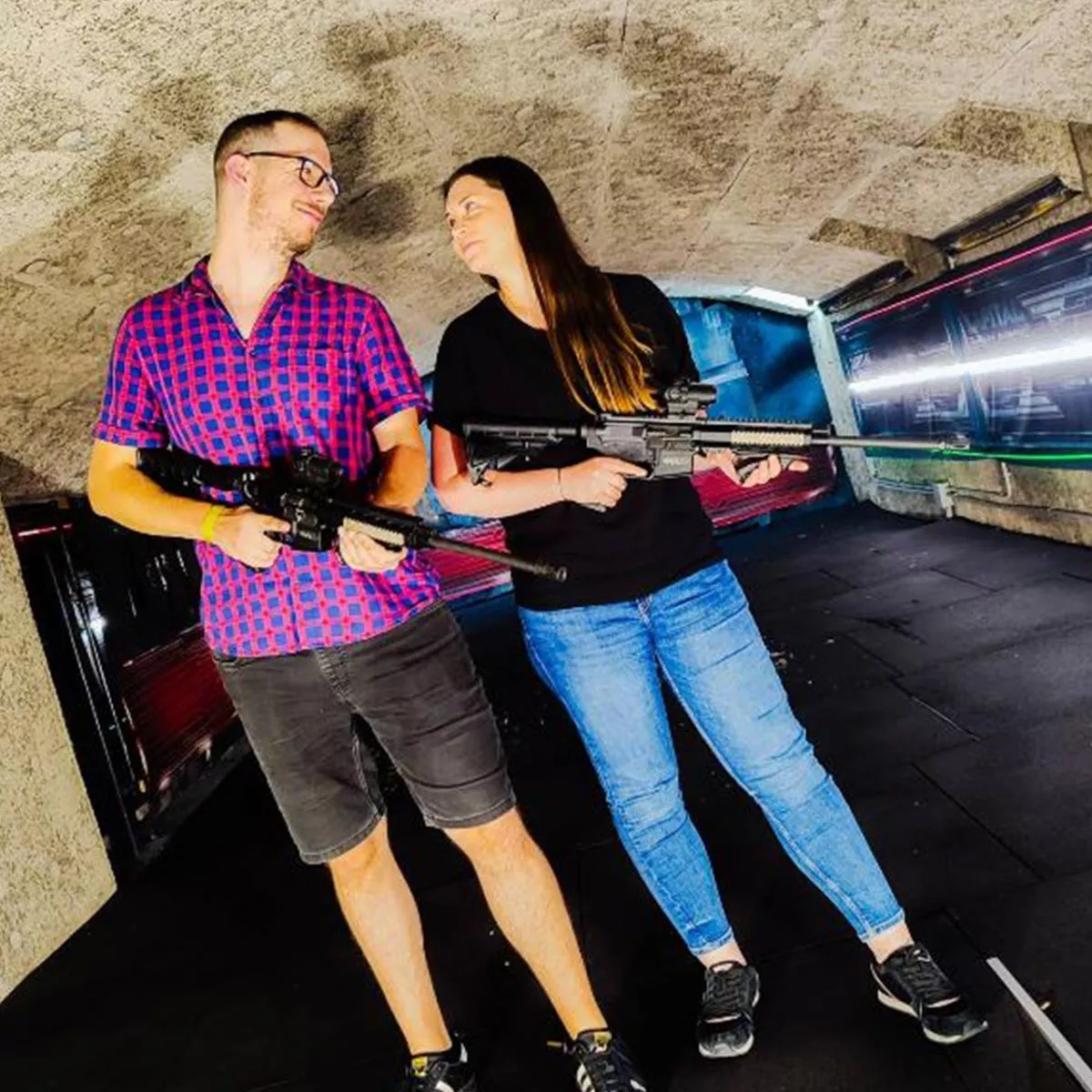 Nous sommes allées tirer en groupe pour l'enterrement de vie de jeune fille de mon amie. Ce fut une expérience formidable. Ils ont très bien tout expliqué, et les instructeurs étaient également des gens incroyablement cools (ou vraiment sympathiques) et ont beaucoup plaisanté. Ils nous ont prêté attention et ont fait partie de notre fête. À la toute fin, ils ont pris de nombreuses photos de nous que nous avons pu garder comme souvenir. Je ne peux que les recommander.